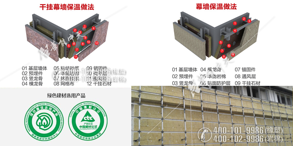 幕墻防火保溫巖棉板是專為需要降噪、保溫、隔熱和防火的各種干掛幕墻系統(tǒng)應用特別設計。