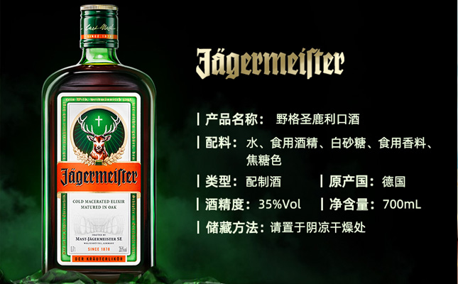 德國(guó)野格酒Jagermeiste又名圣鹿是一種由56種草藥和香料制成的利口酒口感怎么樣 酒精含量為35% 它是Mast-jgermeisterse的旗艦產(chǎn)品 野格酒價(jià)格多少錢(qián)一瓶