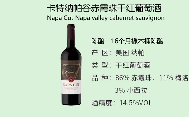 卡特納帕谷赤霞珠干紅葡萄酒 Napa Cut Napa valley cabernet sauvignon 納帕谷在1981年即成為加利福尼亞州的第一個美國法定葡萄酒產(chǎn)區(qū)(AVA)